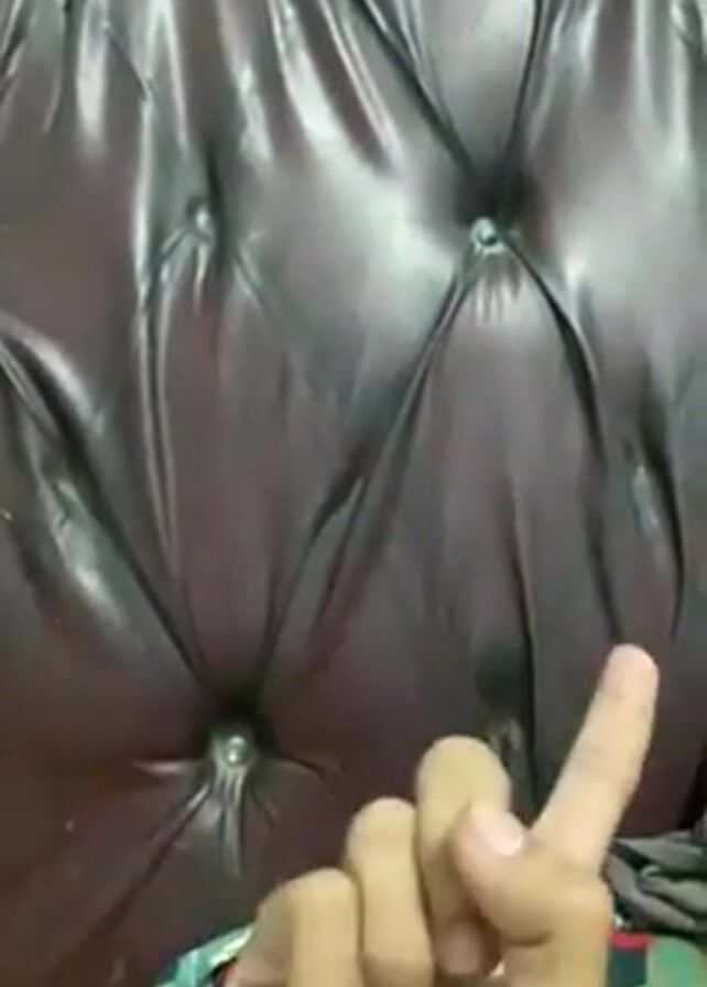 A human hand counts from two to four on its fingers in front of a tufted, leather headboard