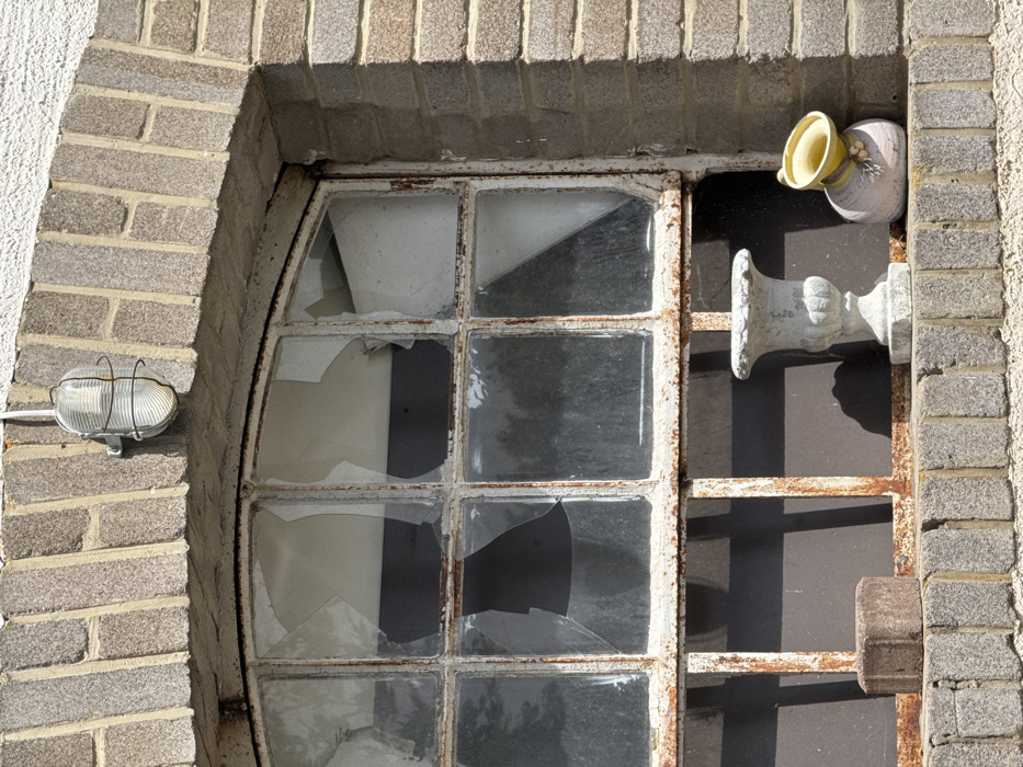 - "A dilapidated window with a rusted frame and multiple panes of shattered glass is set into a brick wall" by FM-IL2Dl2, licensed under CC BY 4.0