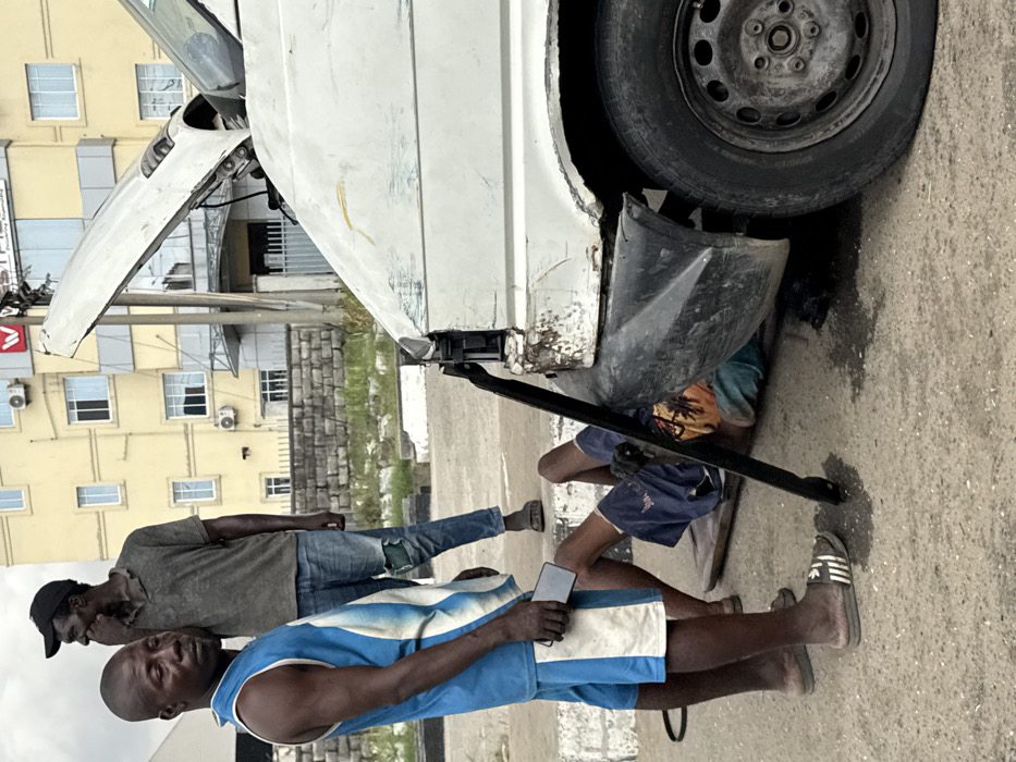 - "An outdoor scene in Ilado, Nigeria, depicts the roadside repair of a white van on an asphalt surface" by FM-ddIDX2, licensed under CC BY 4.0