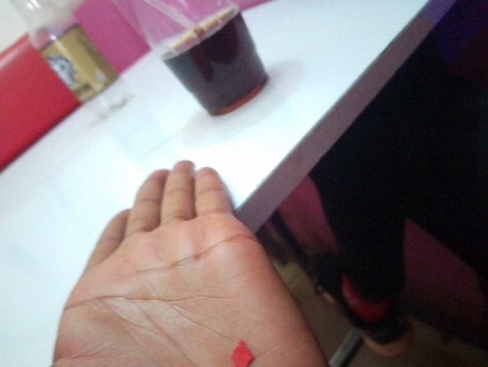 hand with a red sticker on the palm, resting on a white table. A glass of dark liquid sits on the table in the background. The person is wearing a black shirt and a red shoe. The image was taken in Rungiri, Kenya, at the coordinates -1.255 latitude and 36.694 longitude. The environment is not fully visible, but appears to be indoors. The hand is positioned in the lower left portion of the image and is the main focus. There is no interaction or action occurring in the image, but the presence of the hand and the sticker suggests a possible moment of reflection or thought.