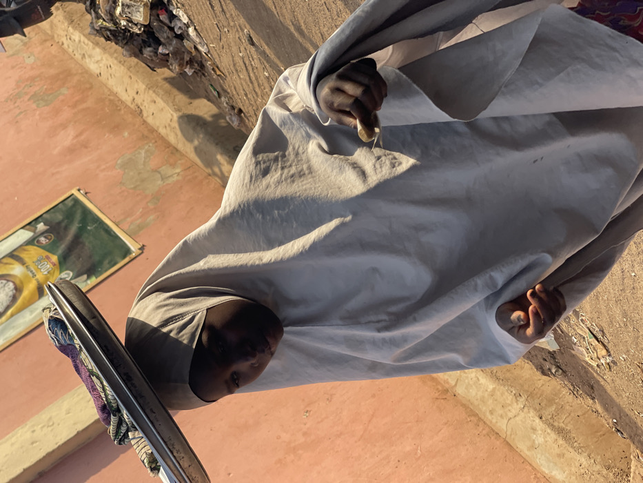 The image depicts an outdoor scene in Samaru, Nigeria, centered on a young individual