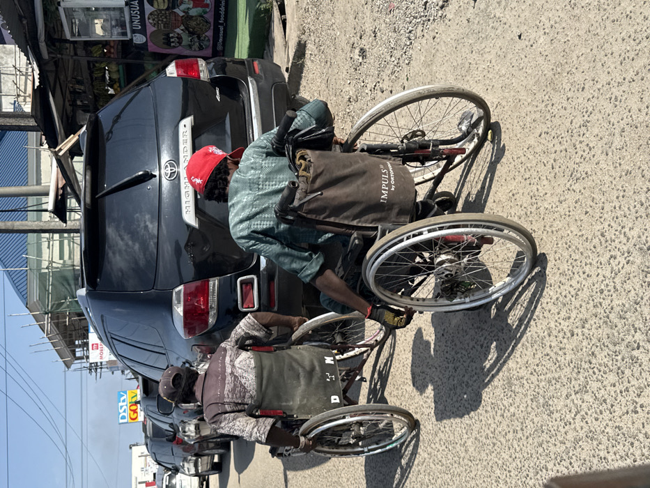 - "Two individuals in wheelchairs are depicted from a rear perspective, moving along a paved road in Badore, Nigeria, during daylight" by FM-ddIDX2, licensed under CC BY 4.0