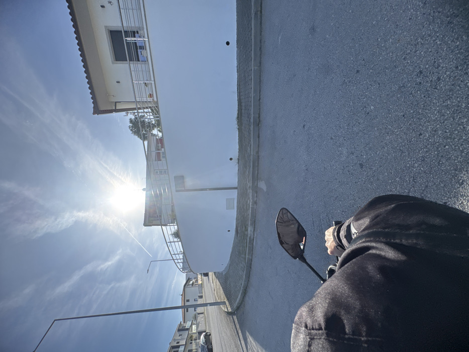 - "The image captures a first-person perspective from an individual operating a motorcycle or scooter on a paved road in Mirandela, Portugal, under clear daylight conditions" by FM-RHiCd2, licensed under CC BY 4.0