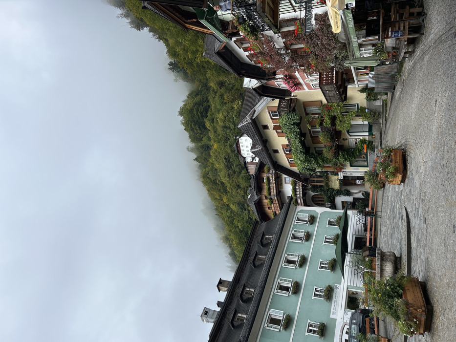 - "This image depicts a cobblestone street or square within Hallstatt, Austria, specifically in an area characterized by traditional Alpine architecture, with a steep, densely forested mountain rising immediately behind the structures" by FM-bltSH3, licensed under CC BY 4.0