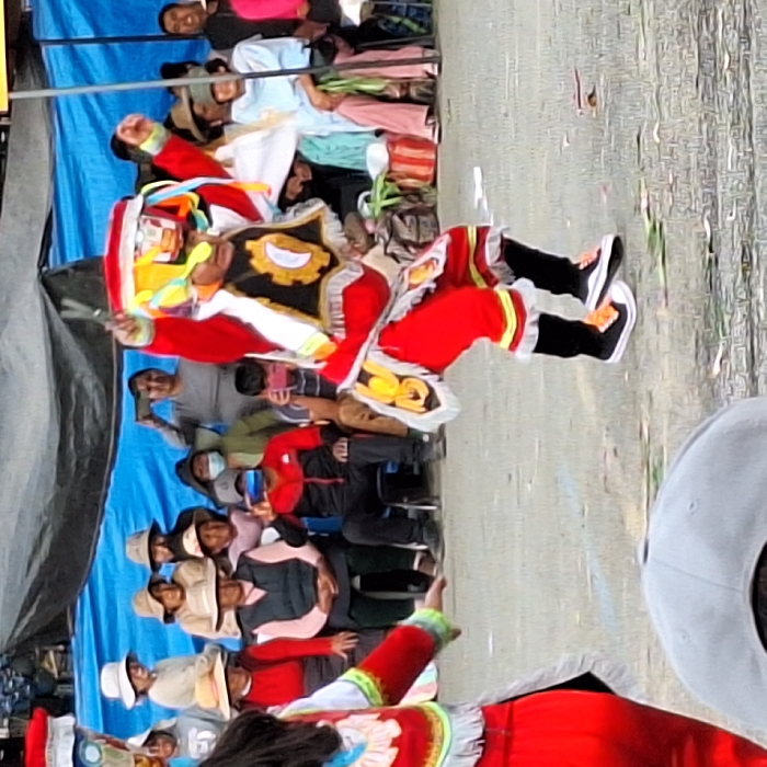 This image depicts an outdoor cultural performance in José Luis Bustamante y Rivero, Peru