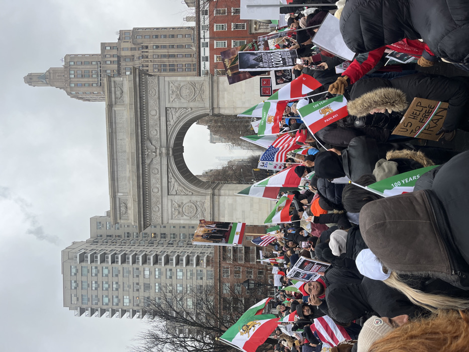 - "A crowd gathers in front of the Washington Square Arch, holding Iranian and American flags" by FM-YQuUf2, licensed under CC BY 4.0