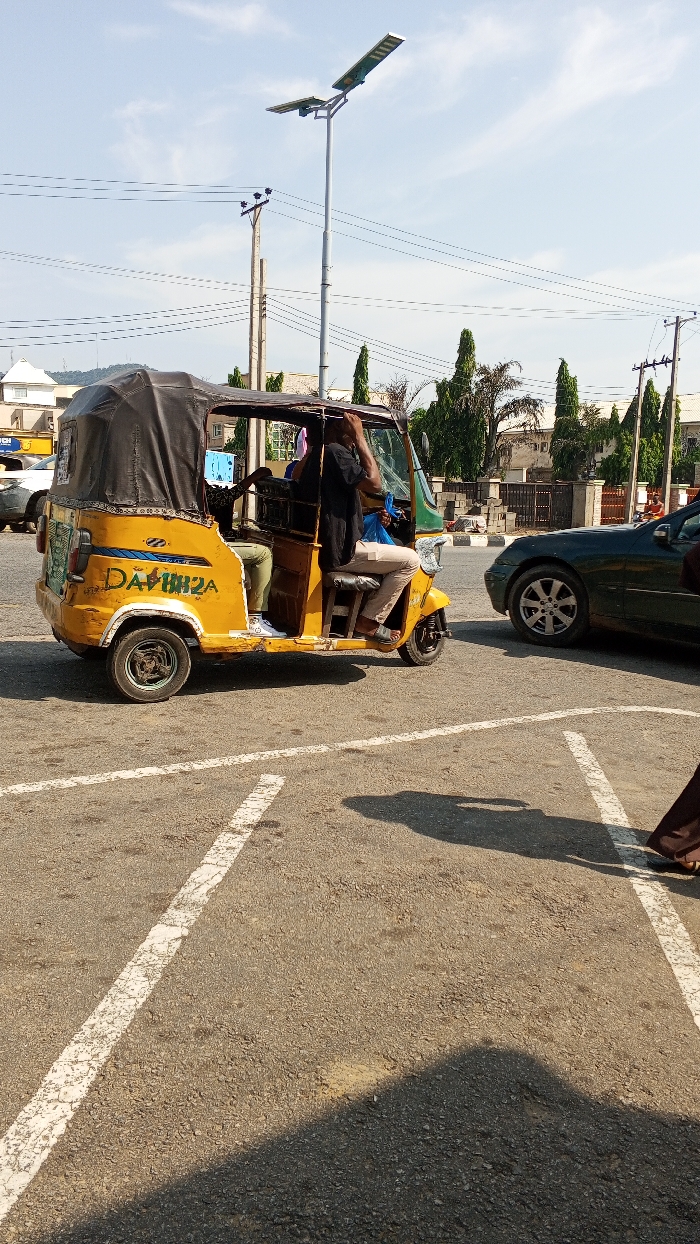 - "A daylight outdoor scene in Lokoja, Nigeria, features a yellow and black commercial tricycle, identified by the text "DAHH2A," positioned on an asphalt surface marked with faded white lines" by FM-zx5Cv2, licensed under CC BY 4.0