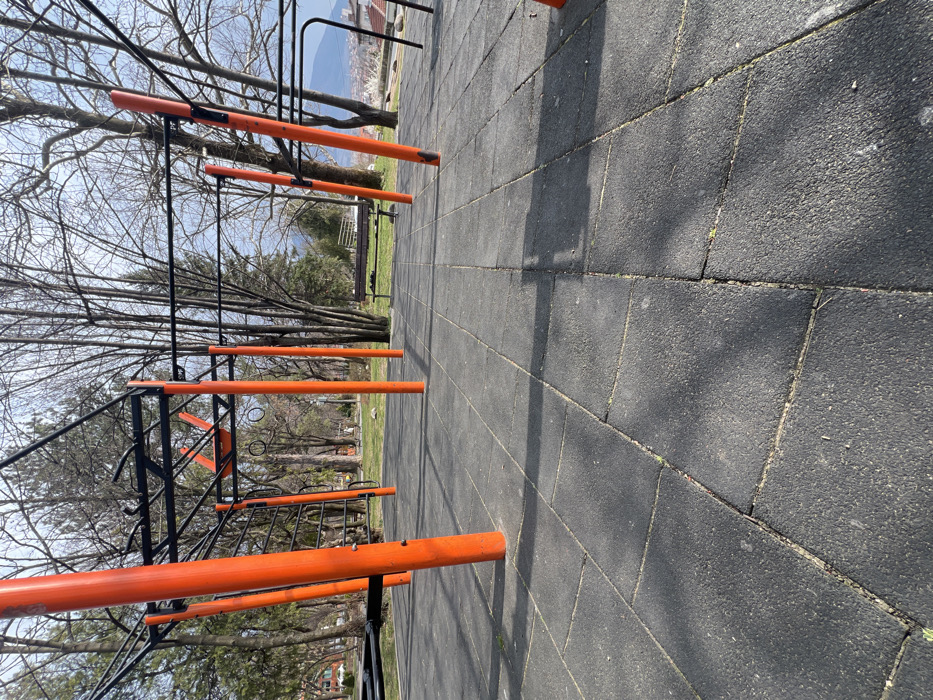 This image depicts an unoccupied outdoor calisthenics park in Dupnitsa, Bulgaria