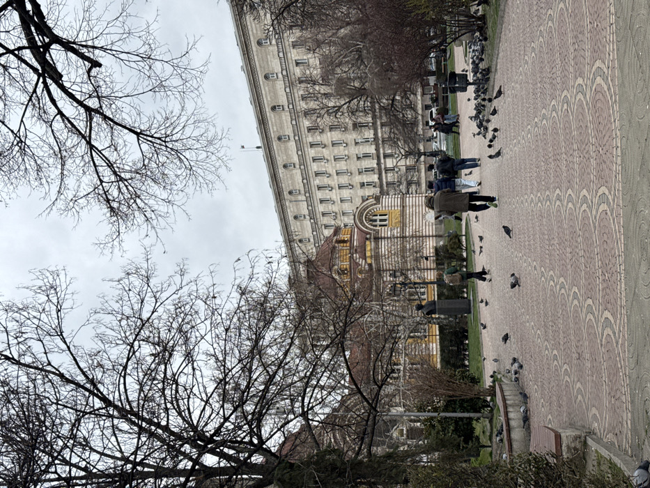 An image captures an overcast day in the City Garden (Gradska Gradina) in Sofia, Bulgaria, looking northeast