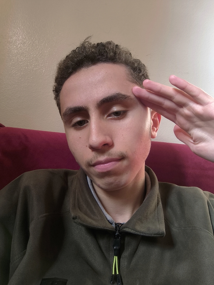 - "A young male with short, curly brown hair and light facial hair on his upper lip is depicted in a close-up, eye-level shot" by FM-KeD0c2, licensed under CC BY 4.0