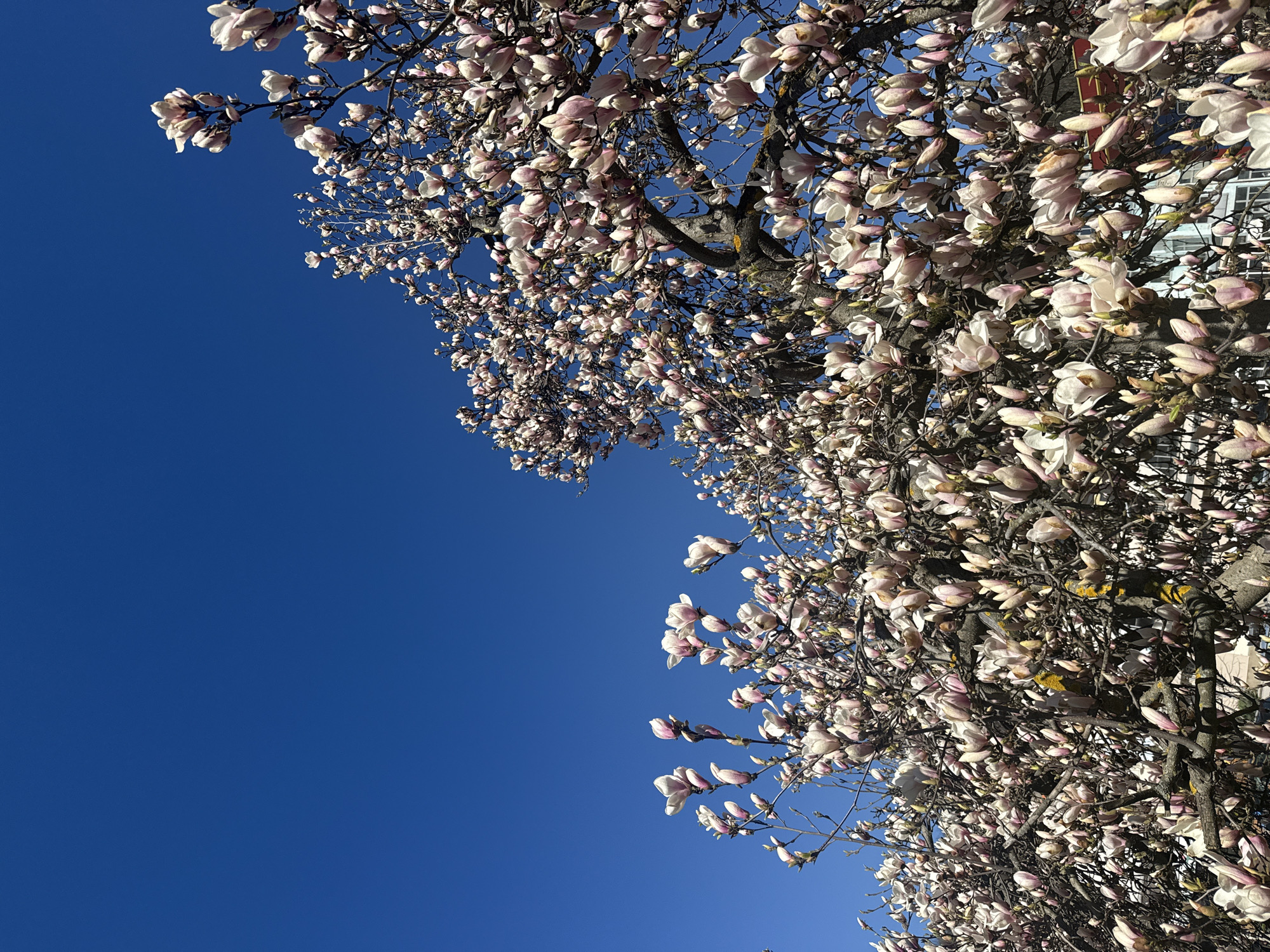 - "view looking up into the branches of a flowering tree with light pink and white blossoms" by FM-ANEzp1, licensed under CC BY 4.0