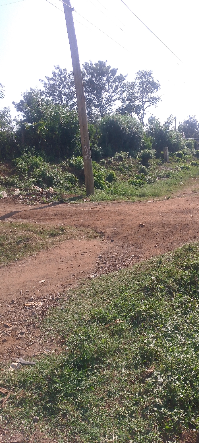 The image captures an unpopulated outdoor scene in West Sakwa ward, Kenya, dominated by an unpaved dirt path and dense vegetation under a bright, overcast sky