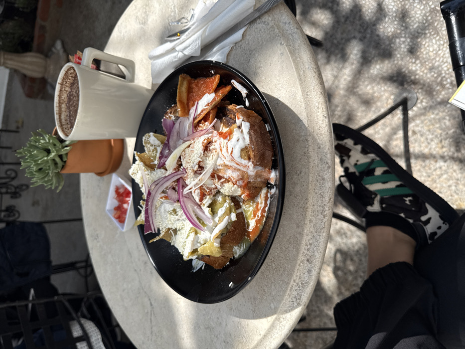 - "A high-angle outdoor shot depicts a breakfast or brunch scene on a round, light-grey textured table, likely in a cafe in Mexico City, Mexico" by FM-WIf2j2, licensed under CC BY 4.0