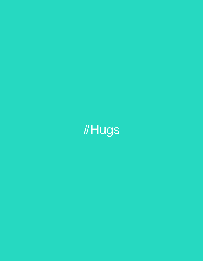 The scene, located in Ciudad de la Costa, Uruguay, is a digital graphic. It displays a solid, uniform teal-colored background spanning the entire frame. Centrally positioned both horizontally and vertically on this background is the white text '#Hugs', rendered in a sans-serif typeface. No individuals, specific physical objects, actions, interactions, or discernible environmental features are present within the visual frame beyond the described color field and text.