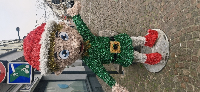 - "An outdoor, eye-level photograph captures a large, anthropomorphic Christmas decoration in the city of Lens, France, likely situated on a commercial street" by FM-uLzcF2, licensed under CC BY 4.0