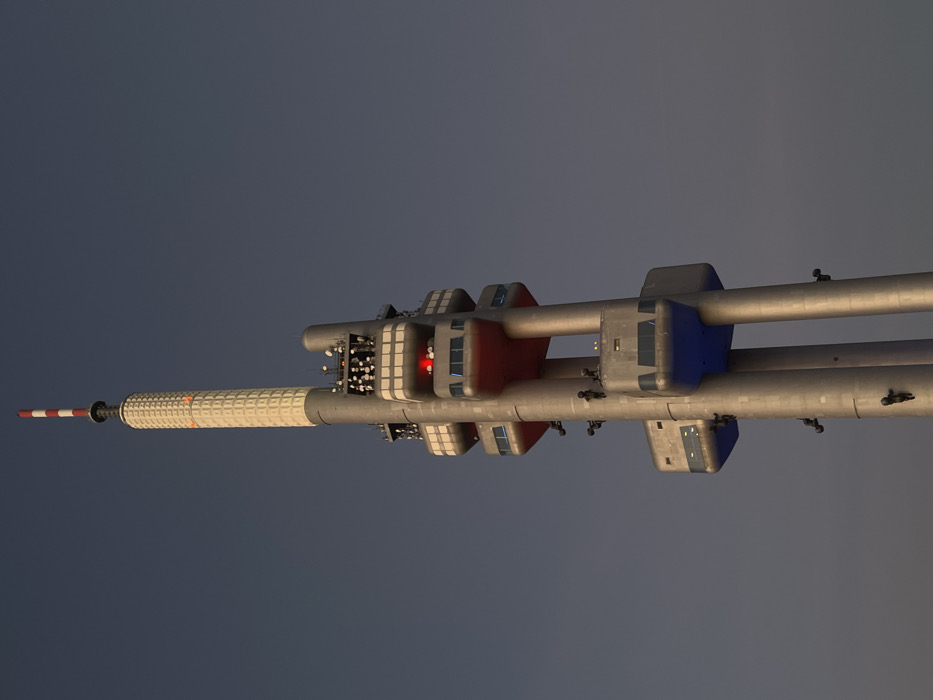 - "The image displays the Žižkov Television Tower, situated in Praha 3, Czechia, viewed from a low angle against a clear, dark blue-grey sky" by FM-iOSLp1, licensed under CC BY 4.0