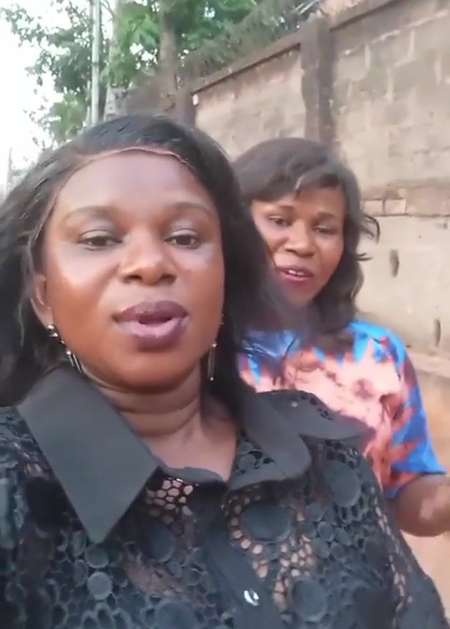 Two women are standing close together, likely outdoors, with one holding a camera and recording