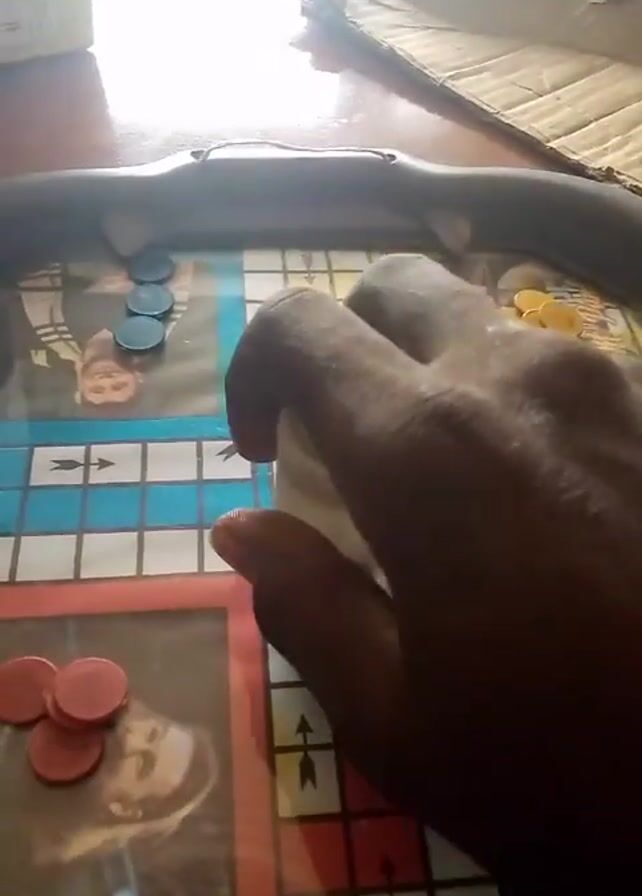 Ludo board game with red, yellow, green, and blue spaces, each with a picture of a celebrity on it
