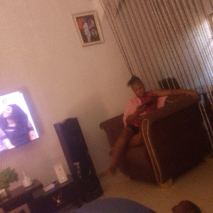 The scene depicts a domestic interior, likely a living room, within Abakaliki, Nigeria
