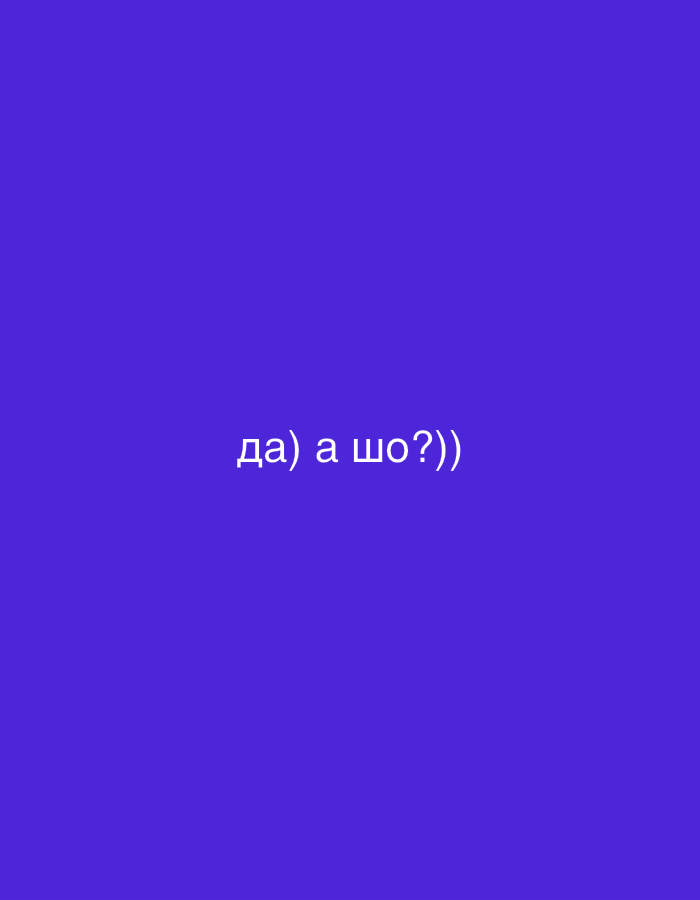 This digital image features white Cyrillic text centered against a solid dark purple background. The text reads "да) а шо?))", which translates to "yes) and what?))". No individuals, physical objects, actions, or interactions are visible within the image. The environment is a uniformly colored digital canvas. This scene is described as being located in the city of Čeluga, Montenegro.