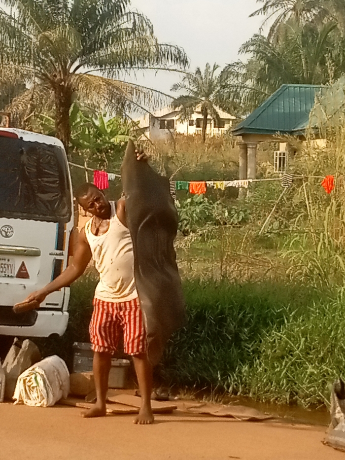 The image portrays a semi-urban scene in Igbenu, Nigeria