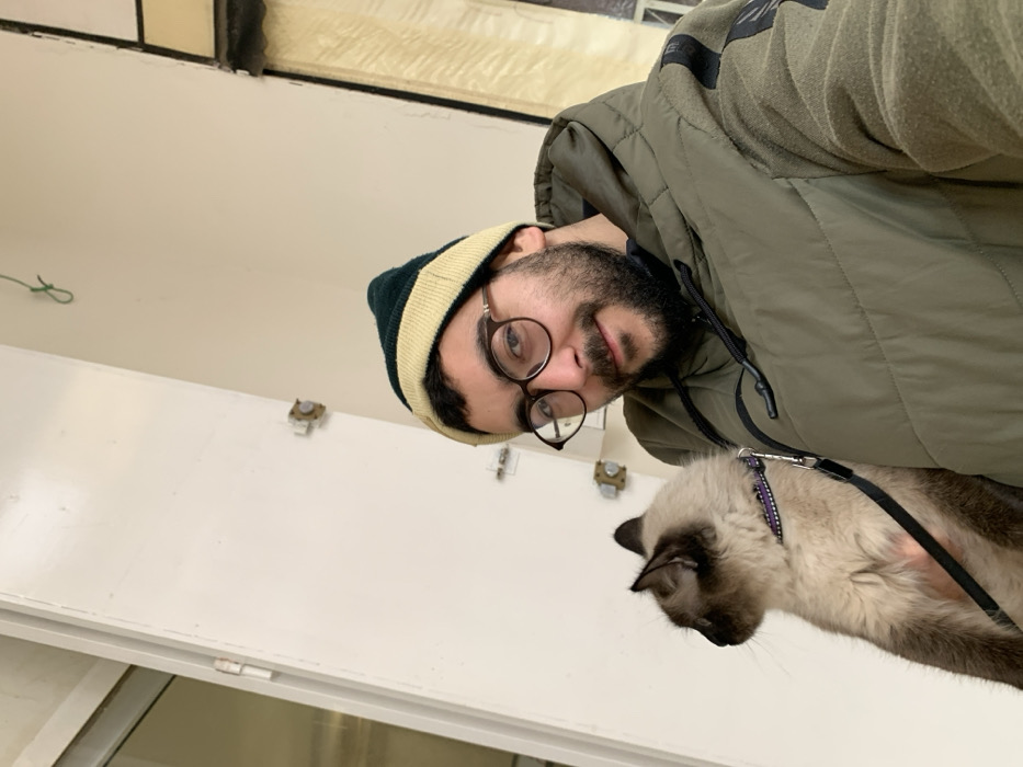 - "This image, taken in Ouislane, Morocco, depicts a male individual and a cat in an indoor setting" by FM-5gXC02, licensed under CC BY 4.0