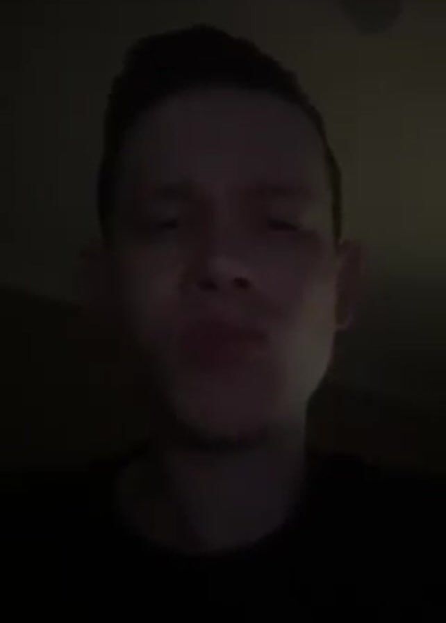 A young male with short dark hair, wearing a black shirt, looks directly into the camera with a dubious expression
