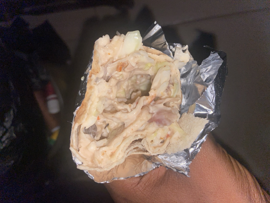 - "A partly eaten gyro, wrapped in aluminum foil, is displayed in hand" by FM-tWINy1, licensed under CC BY 4.0