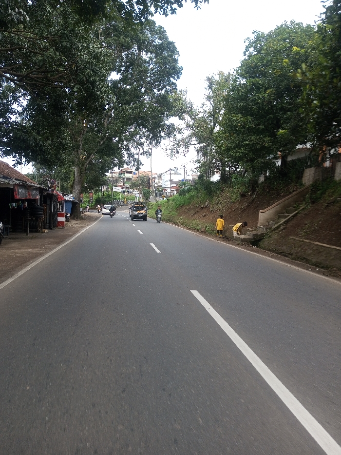 The image depicts an asphalt road in Chhenangri_Rishor, Bhutan, under an overcast sky