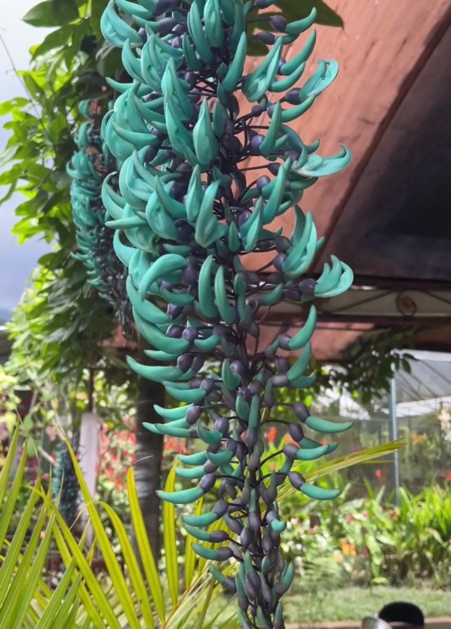 jade vine with its distinctive turquoise or teal-colored flowers hanging down