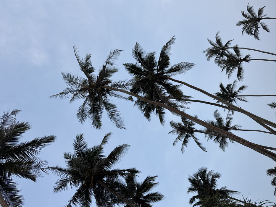 - "This image captures a view of numerous tall coconut palm trees against a light blue sky in Talpe, Sri Lanka" by FM-PAcZC3, licensed under CC BY 4.0