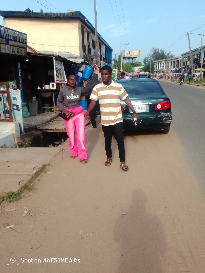 The image depicts a daytime street scene in Egbagu, Nigeria