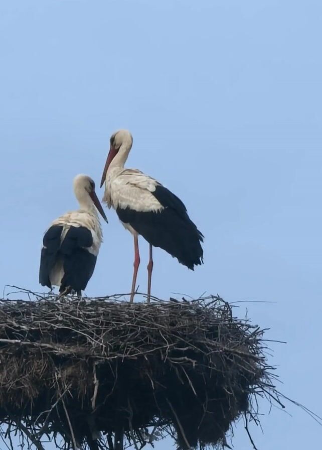 - "Two storks stand in a large, messy nest made of twigs and branches" by FM-IJTUj2, licensed under CC BY 4.0