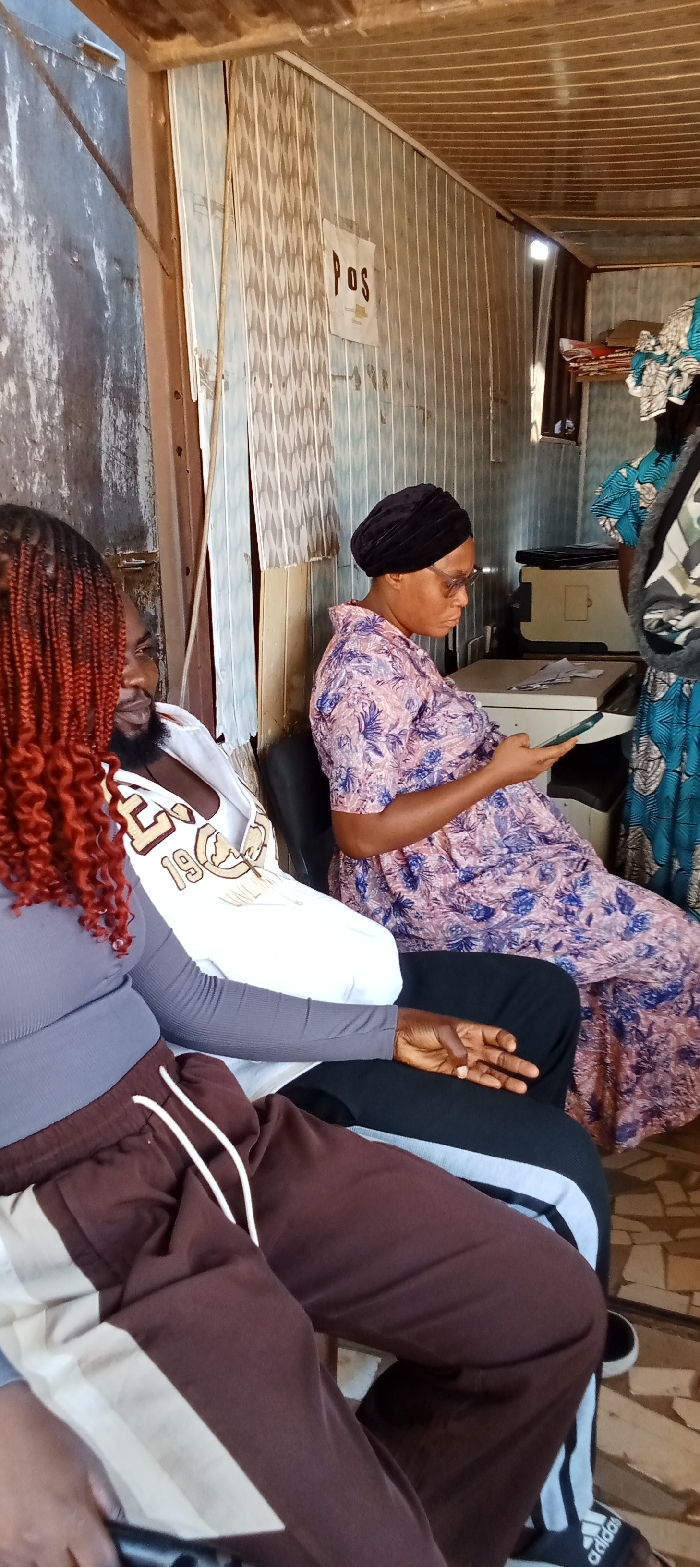 - "Within a modest interior space, likely a Point-of-Sale (POS) service outlet in Kinkinau, Nigeria, four individuals are present" by FM-gYzzh1, licensed under CC BY 4.0