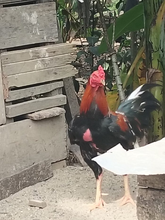- "A red and black rooster stands on a light-colored gravel surface in Tanohmanyang, Indonesia" by FM-ooOYw1, licensed under CC BY 4.0