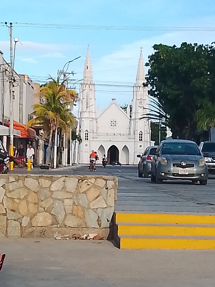 - "The image displays a daytime urban street scene in Juan Griego, Venezuela, prominently featuring the Iglesia Nuestra Señora de la Candelaria (Church of Juan Griego) in the background" by FM-ymGPj1, licensed under CC BY 4.0