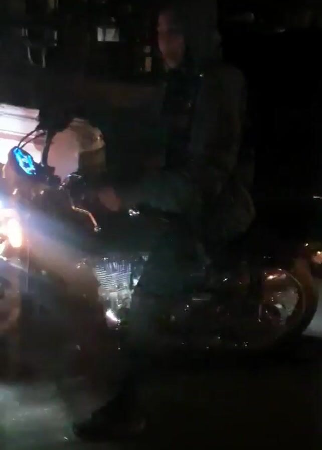 - "A person wearing a dark hooded jacket and dark pants sits on a motorcycle at night" by FM-LJRLv2, licensed under CC BY 4.0