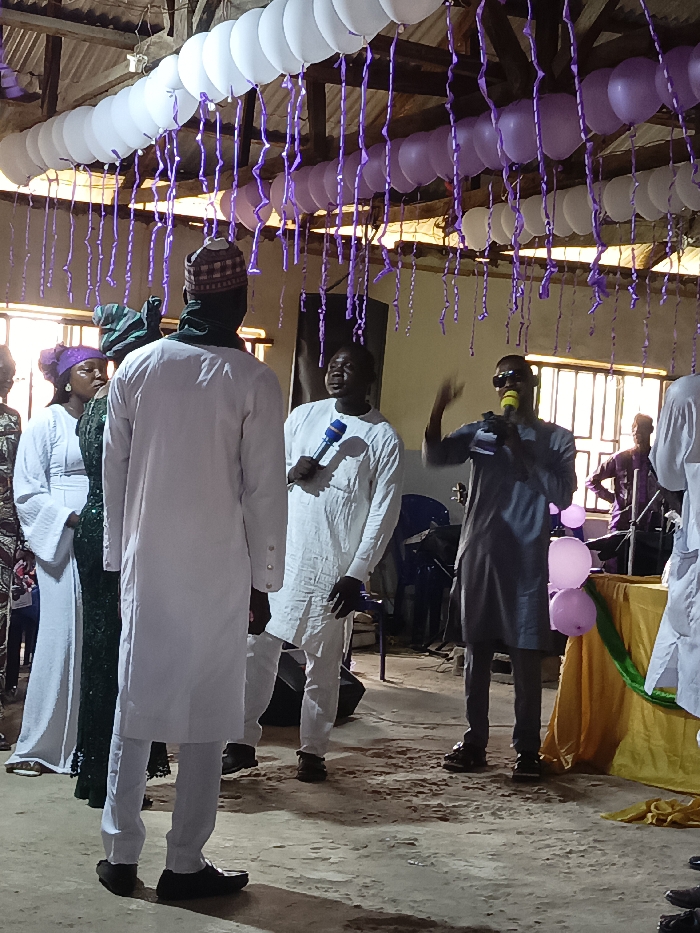 An indoor event, possibly a celebration, is depicted in Doma, Nigeria