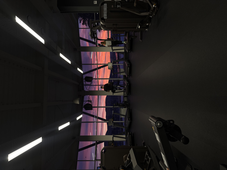 - "The image displays the interior of a fitness center located in Krasnoyarsk, Russia, featuring a panoramic window wall overlooking a dramatic sunset" by FM-8IGOS2, licensed under CC BY 4.0