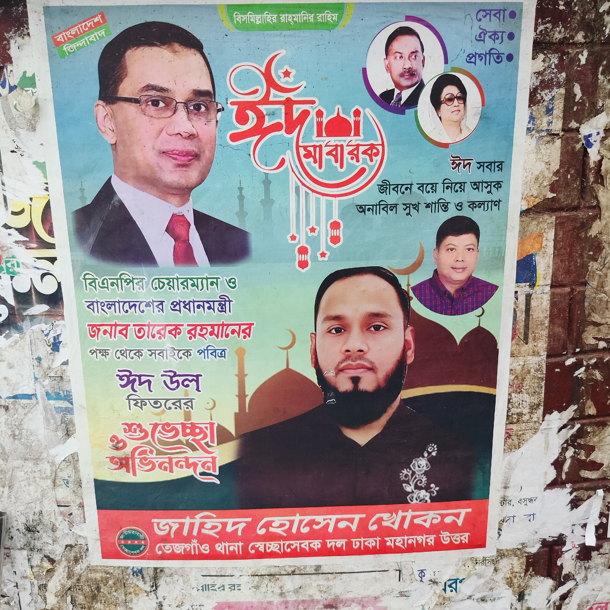 - "This is a photograph of a political poster for Eid ul-Fitr, posted on a wall in Dhaka, Bangladesh" by FM-rkNqI2, licensed under CC BY 4.0