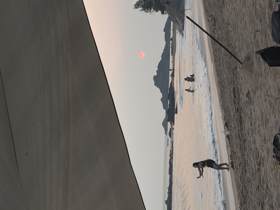 - "The image captures a beach scene in Gokarna, India, during what appears to be either sunrise or sunset, viewed from beneath a light-colored canopy that diagonally covers the top portion of the frame" by FM-EaPvq1, licensed under CC BY 4.0