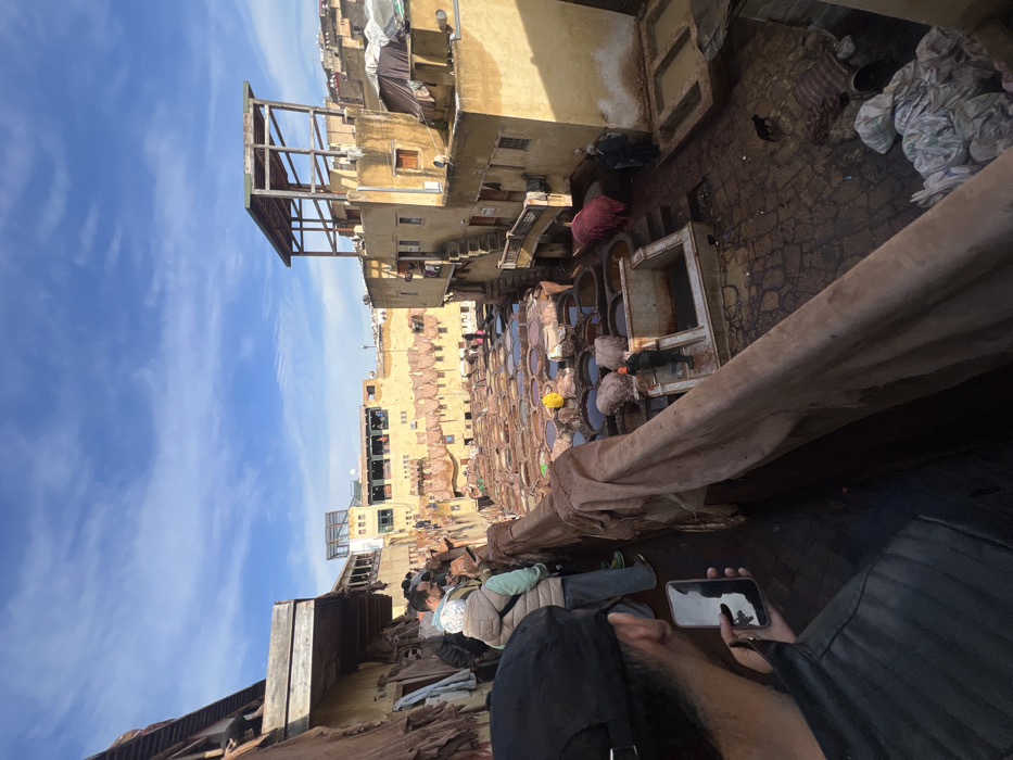 - "The image depicts an elevated view of the Chouara Tannery in Fez, Morocco, a traditional leather processing facility" by FM-aWMrL2, licensed under CC BY 4.0