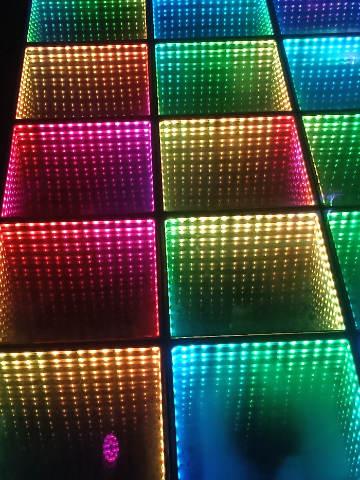 - "The image depicts a grid of square or rectangular illuminated floor panels, each creating an infinity mirror effect" by FM-ZCHKv2, licensed under CC BY 4.0