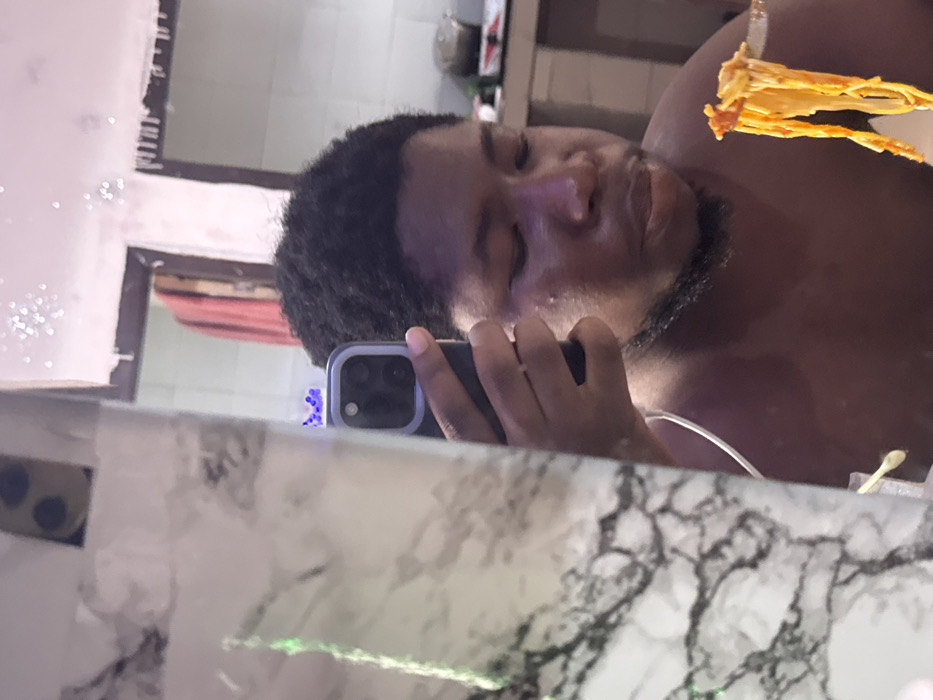 This image, captured in Gbongan, Nigeria, depicts a dark-skinned male taking a selfie in a reflective surface