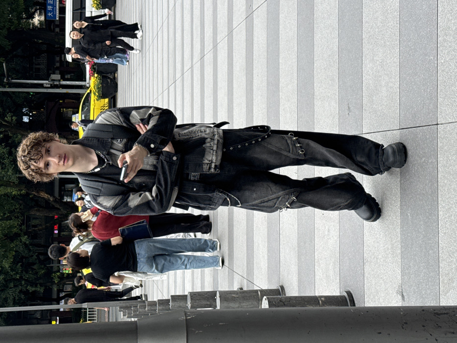 - "A young male subject with light skin and curly brown hair stands centrally on a patterned sidewalk in the Yuzhong District of Chongqing, China, near Daping Zhengjie, as indicated by visible street signage" by FM-LQg7b2, licensed under CC BY 4.0
