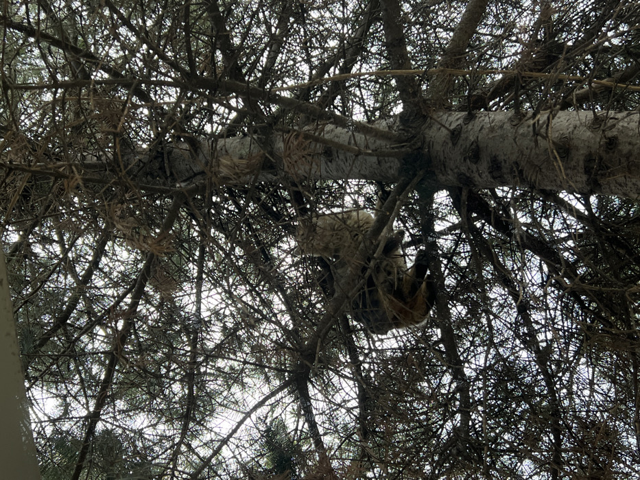 - "A domestic cat is observed perched within the dense branches of a coniferous tree in Sofia, Bulgaria" by FM-amSDp2, licensed under CC BY 4.0