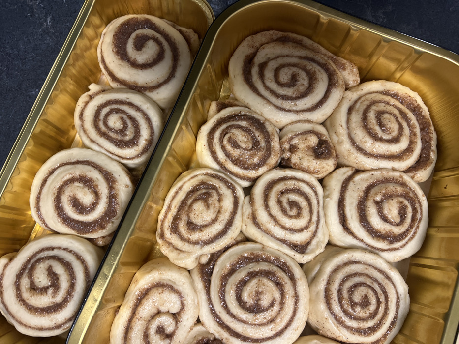 - "Two golden-colored, rectangular baking trays filled with unbaked cinnamon rolls are depicted, situated in Petah Tikva, Israel" by FM-0vSl53, licensed under CC BY 4.0