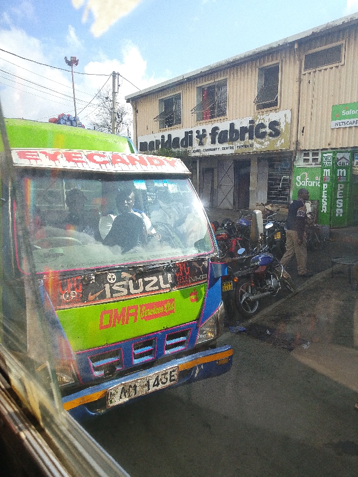 The image depicts an urban street scene in Pumwani, Nairobi, Kenya