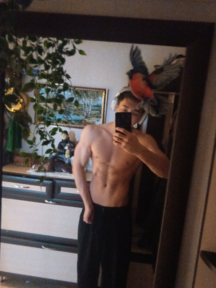 - "The image depicts a shirtless male individual taking a mirror selfie in an indoor setting, likely a residence in the city of Большой Букор, Russia" by FM-Zwv733, licensed under CC BY 4.0