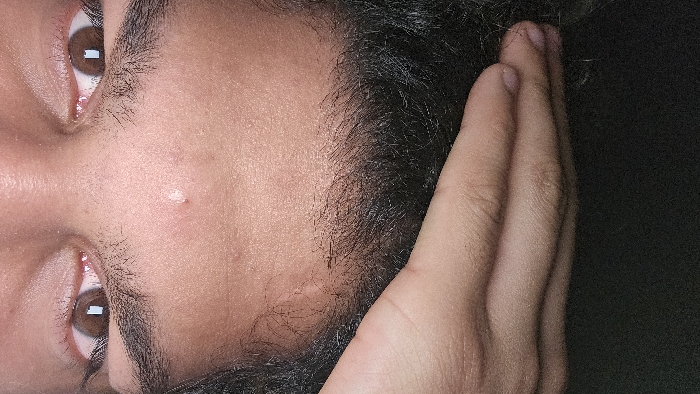 The image displays a close-up, headshot-style view of a human subject, likely male, with medium-dark skin tone